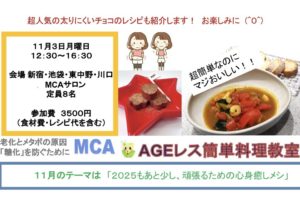 MCAブログの頑張らない、簡単、安全料理やMCAのホームページのAGEレス健康料理レシピで過去のレシピもご覧いただけます。